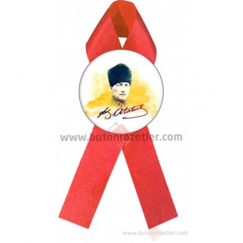 Atatürk kalpaklı ve imzalı yaka rozeti fiyonk şeklinde tasarlanmıştır ve genellikle resmi törenlerde kullanılır. Fiyonklu tasarımı ise sevginin ve saygının bir sembolüdür.