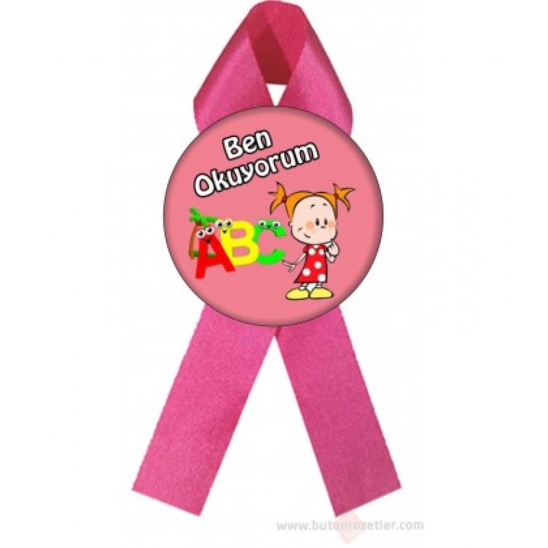 1 Sınıf Ben Okuyorum Pembe Fiyonk Okuma Rozetleri | Butonrozetler.com