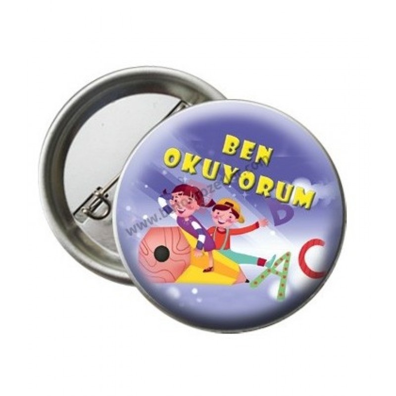 Ben Okuyorum Kalem Figürlü Rozet 44 mm | Buton Rozet