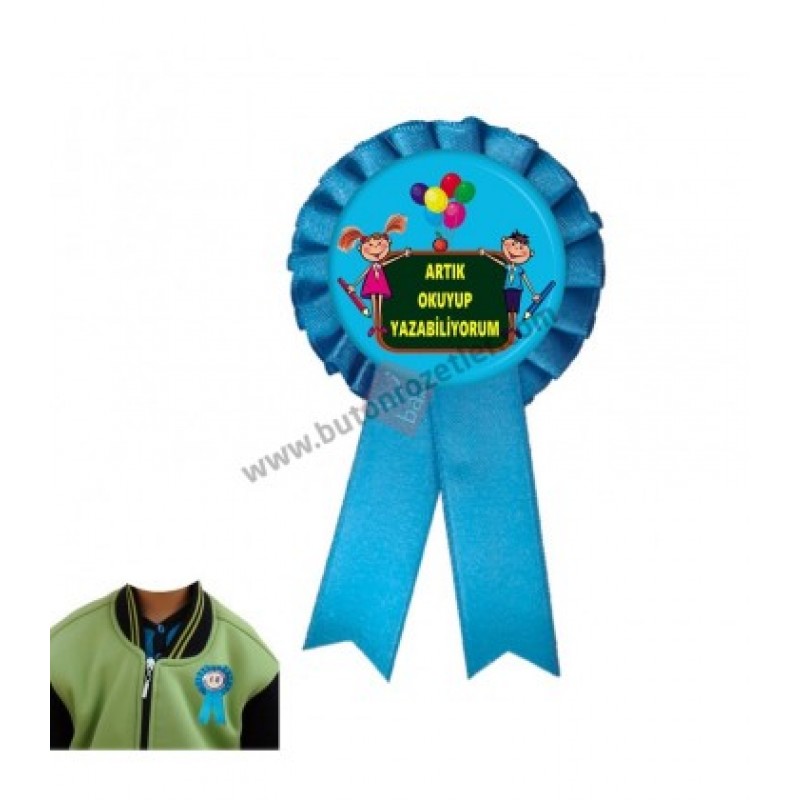Artık Okuyup Yazabiliyorum Balonlu Mavi Kokart Rozet