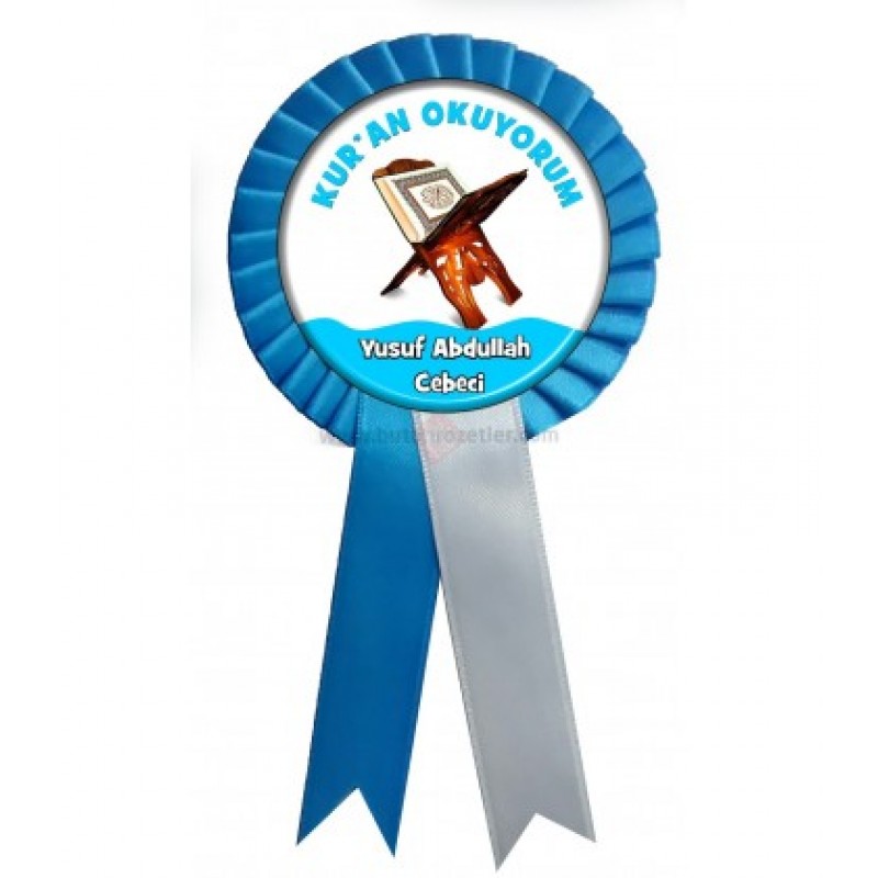 Kur'an Okuyorum İsimli Kurdaleli Yaka Rozetleri