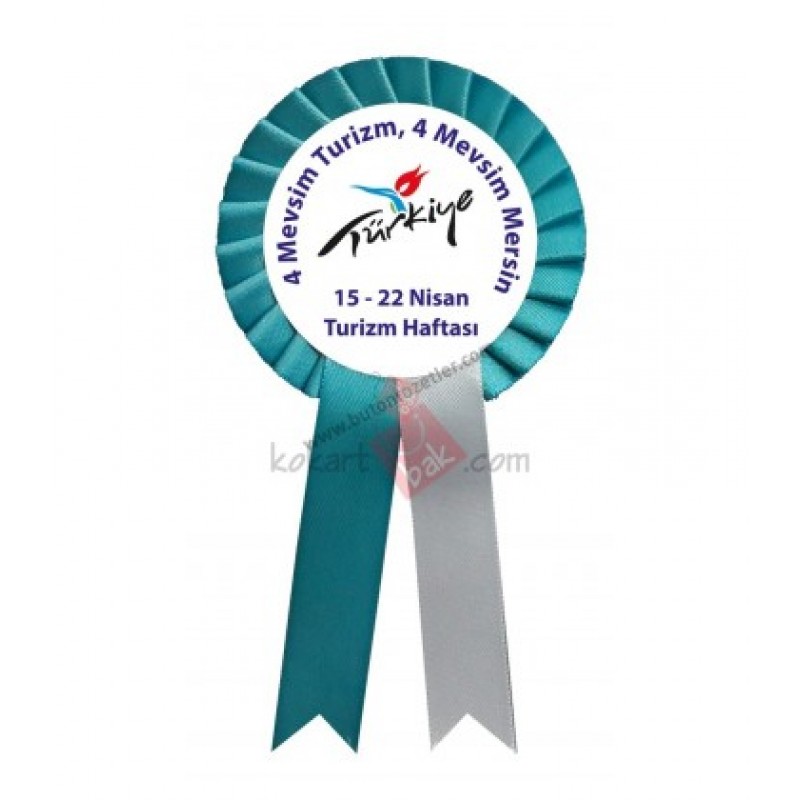 Turizm Haftası etkinliklerinde kullanılmak üzere üretimini yaptığımız saten kokartlar kendi üretimimiz olup; 2 cm saten kurdeleden  8 cm çapında 15 cm boyunda 6 cm görsel kuşe baskı olup,arkası çift taraflı silikon  bantlıdır. isteğe göre ek ücretle iğneli olarakta sipariş verebilirsiniz