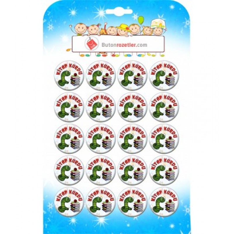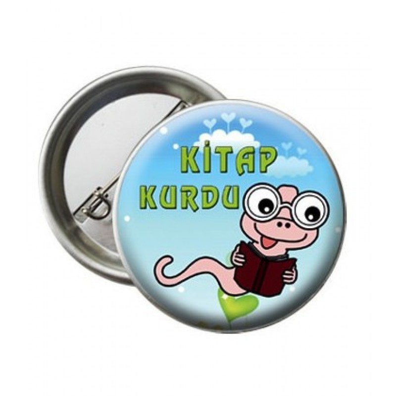 Fiyonklu Kitap Kurdu Motivasyon Rozeti | Butonrozetler.com