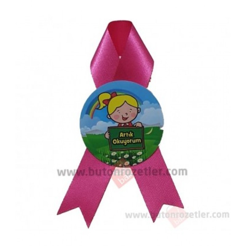 Pembe Kurdeleli Okuma Rozeti 057 |butonrozetler.com