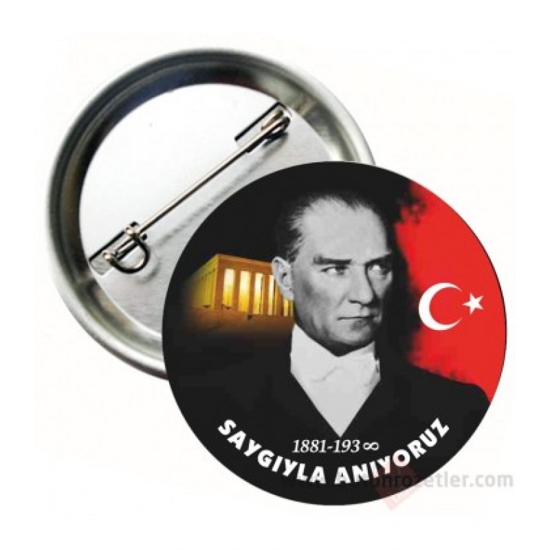 Atatürkü Saygıyla Anıyoruz Rozetleri Bayraklı| Butonrozetler.com