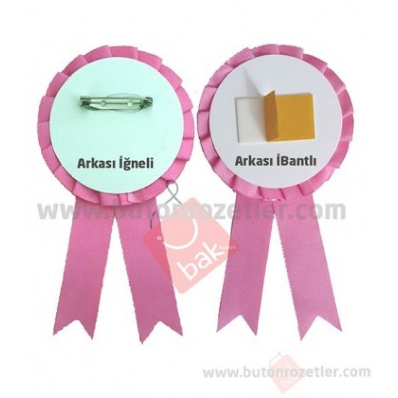 Pembe Kurdaleli Rozetler 7 cm çapında 14 cm boyunda orta görsel 4,4 cm metal rozet olup arkası iğnelidir.