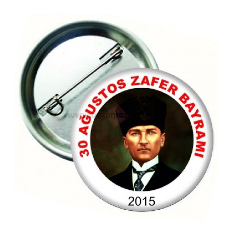 30 Ağustos Zafer Bayramı Kutlama Tören ve Etkinliklerde kullanılmak üzere ürettiğimiz buton yaka rozetlerimiz 5,8 cm çapında PVC korumalı arkası iğnelidir. Size uygun miktarı paket seçenekleri bölümünden bakabilirsiniz . Aynı görseli isterseniz ek ücretle fiyonklu rozet yada saten kokart olarakta yaptırabilirsiniz.